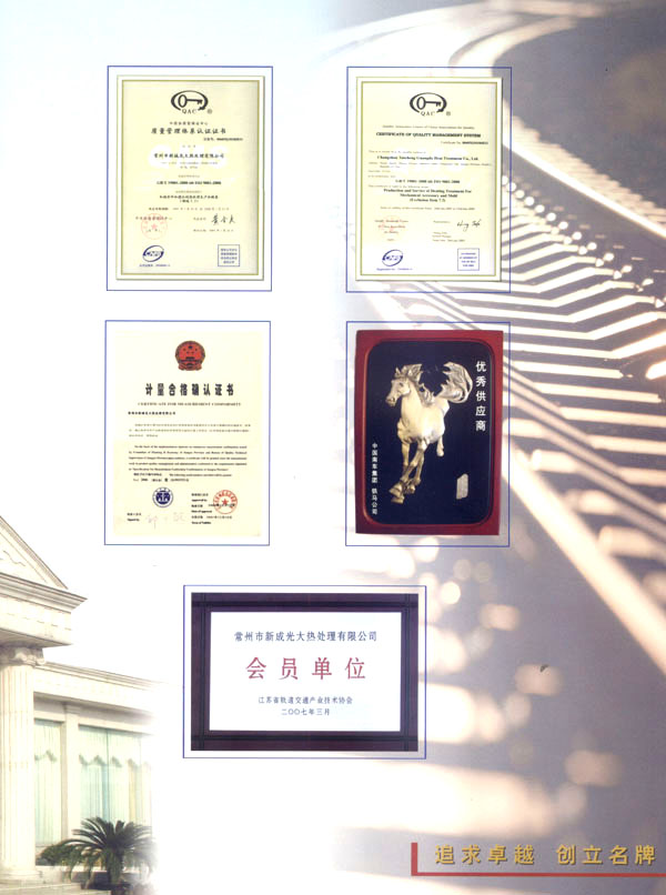 公司現(xiàn)有職工258名,具有高、中級(jí)職稱的管理人員20多名,經(jīng)過培訓(xùn)、考核合格的生產(chǎn)工人200多名。設(shè)生產(chǎn)安全部,技術(shù)質(zhì)量部,設(shè)備動(dòng)力部,經(jīng)理辦公室和生產(chǎn)車間、生產(chǎn)班組等管理的生產(chǎn)部門。本公司是我市熱處理行業(yè)第一個(gè)通過國家質(zhì)量體系認(rèn)證的企業(yè),同時(shí)也是我市軌道交通產(chǎn)業(yè)聯(lián)合會(huì)、省科技廳市科技局定點(diǎn)扶持的骨干企業(yè),是鐵道部戚墅堰機(jī)車車輛工藝研究所、航空航天部蘇州長風(fēng)機(jī)械總廠定點(diǎn)協(xié)作單位,是國外阿爾斯通、GE公司、三菱重工等多家公司的合作伙伴。