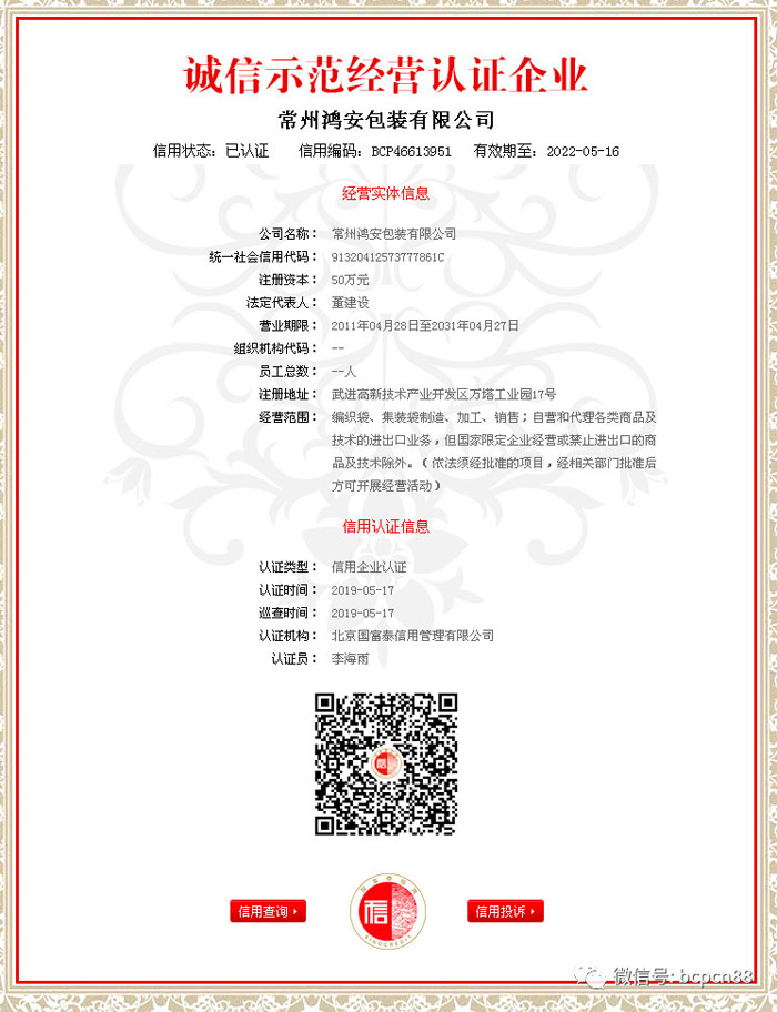 常州鴻安包裝有限公司是專業(yè)集裝袋的生產(chǎn)廠家,F(xiàn)有職工100人,專業(yè)技術(shù)人員20人,我廠擁有先進的全套生產(chǎn)設備,還具備保證產(chǎn)品質(zhì)量的全套測試方法及設備,年產(chǎn)量60萬條。我廠依托科技興廠注重技術(shù)革新在引進先進的設備同時吸收各類高級技師充實生產(chǎn)第一線,生產(chǎn)的各類規(guī)格的集裝袋以出口為主。