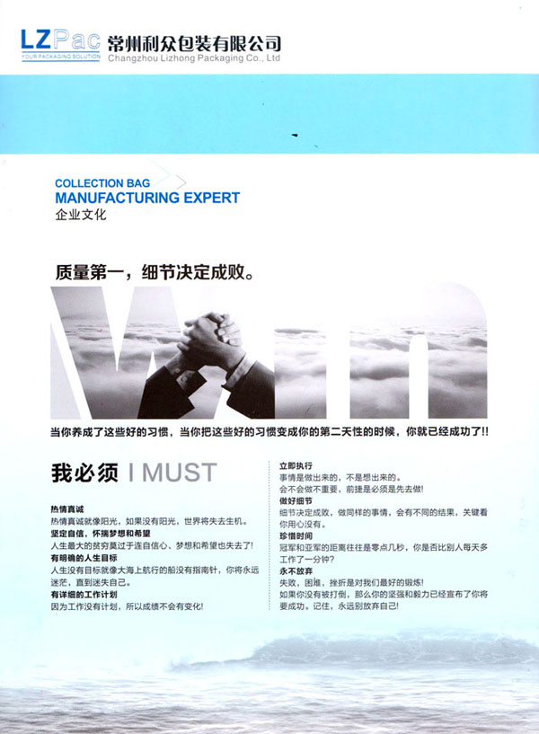 常州利眾包裝有限公司成立于2009年。經(jīng)過10多年的發(fā)展,已發(fā)展成為規(guī)模型的集成袋生產(chǎn)與研發(fā)基地。公司擁有四條拉絲生產(chǎn)線,20余臺(tái)各式圓織機(jī)、10余臺(tái)織帶機(jī),1臺(tái)寬幅涂膜機(jī),10余臺(tái)自動(dòng)裁剪機(jī),200多臺(tái)各式縫紉設(shè)備,其中電腦縫紉設(shè)備多達(dá)40多臺(tái)。公司月產(chǎn)各種中高檔集裝袋20萬條左右。 擁有強(qiáng)大的質(zhì)量管理系統(tǒng)。公司成立初期就通過了ISO9001的體系論證。公司奉行“質(zhì)量第一,客戶至上”的經(jīng)營理念,始終堅(jiān)持以質(zhì)量謀發(fā)展的原則,執(zhí)著追求以新工藝,新設(shè)備,高效率不斷優(yōu)化生產(chǎn)流程,降低生產(chǎn)成本以適應(yīng)市場(chǎng)。常州利眾包裝有限公司地處美麗的江南水鄉(xiāng)——常州。地理位置十分優(yōu)越。 公司主打產(chǎn)品為各種中高端集裝袋。包括各式拉筋袋,導(dǎo)電袋,抗靜電袋。公司客戶清單中包括有很多的國際知名企業(yè),世界500強(qiáng)企業(yè)。 眾包裝——你的包裝解決方案。