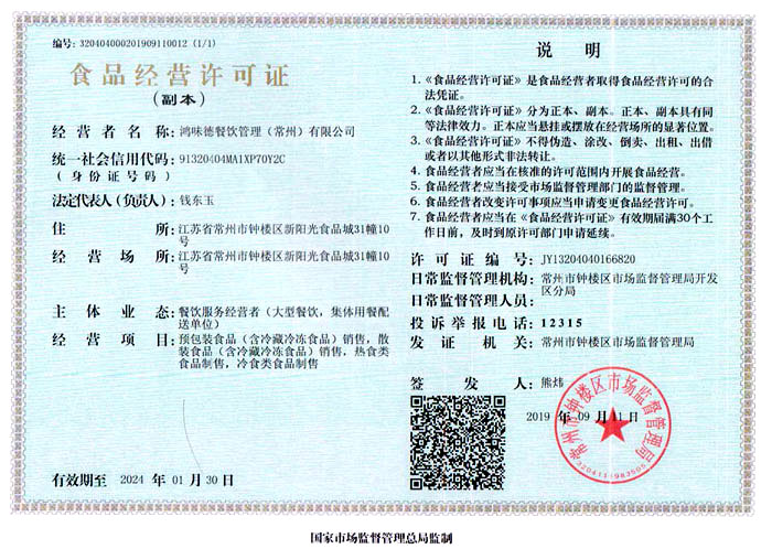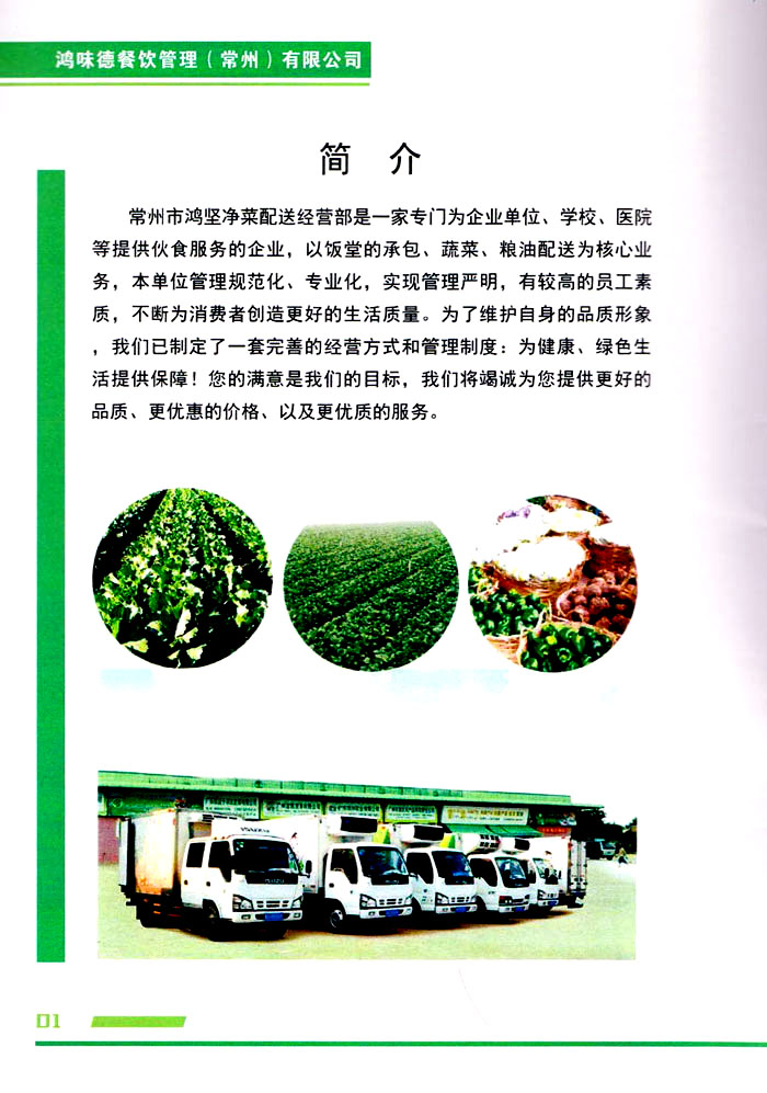 鴻味德餐飲管理(常州)有限公司是一家專門(mén)為企業(yè)單位、學(xué)校、醫(yī)院等提供伙食服務(wù)的企業(yè),以飯?zhí)玫某邪、蔬菜、糧油配送為核心業(yè)務(wù),本單位管理規(guī)范化、專業(yè)化,實(shí)現(xiàn)管理嚴(yán)明,有較高的員工素質(zhì),不斷為消費(fèi)者創(chuàng)造更好的生活質(zhì)量。為了維護(hù)自身的品質(zhì)形象,我們已制定了一套完善的經(jīng)營(yíng)方式和管理制度:為健康、綠色生活提供保障!您的滿意是我們的目標(biāo),我們將竭誠(chéng)為您提供更好的品質(zhì)、更優(yōu)惠的價(jià)格、以及更優(yōu)質(zhì)的服務(wù)。