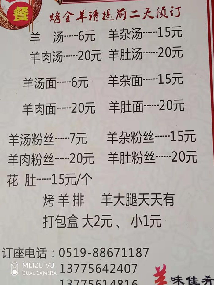 武進區(qū)鄭陸寧河全羊館從事羊肉經(jīng)營四十年,羊館經(jīng)營面積300平方米,從羊頭到羊蹄都能做菜:羊頭、羊排、羊拐、羊蹄、羊耳,其他還有羊羔,烤羊,羊湯面,清水羊肉,全羊宴。羊肉湯只是白煮,湯白而濃稠,肉爛味鮮,還不腥不油不膩。你若細看菜單就能發(fā)現(xiàn),全羊席幾乎都是拿燉湯帶出來的,這更加顯示出羊肉湯的魅力。 我們結合現(xiàn)代人飲食文化的特點,以考究的投料,精細的制作工藝,調出的全羊湯,湯汁乳白、鮮而不膳、香醇不膩、味道鮮美,具有補虛壯陽、溫中暖下之功效。
