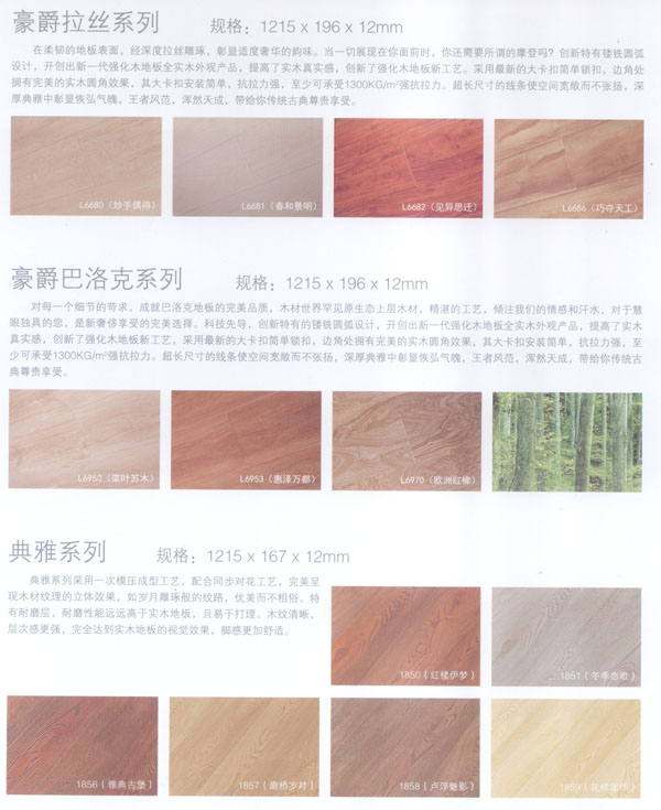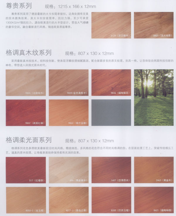 公司生產(chǎn)的地板所選用的材料均為進口或國內(nèi)上等材料。嚴格的入廠檢驗,不使任何不合格的原材料流入生產(chǎn)環(huán)節(jié),優(yōu)異的生產(chǎn)加工工藝使原材料和精良設(shè)備的優(yōu)勢發(fā)揮至及致;嚴格的質(zhì)量管理體系更使每一流轉(zhuǎn)環(huán)節(jié)的產(chǎn)品品質(zhì)一流。每塊出廠的地板都符合比國標更嚴格品質(zhì)標準。