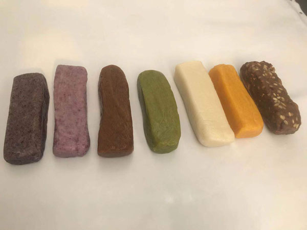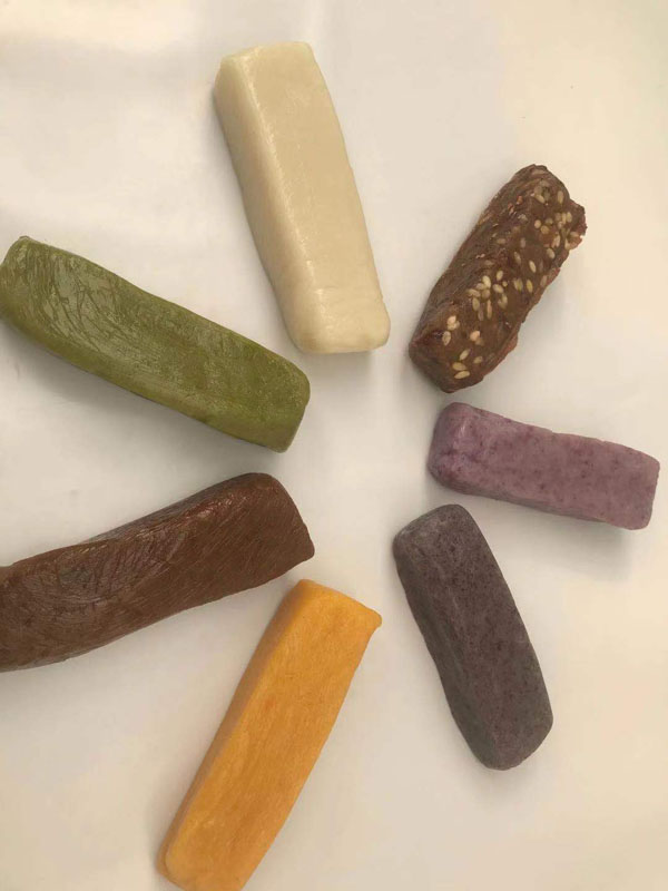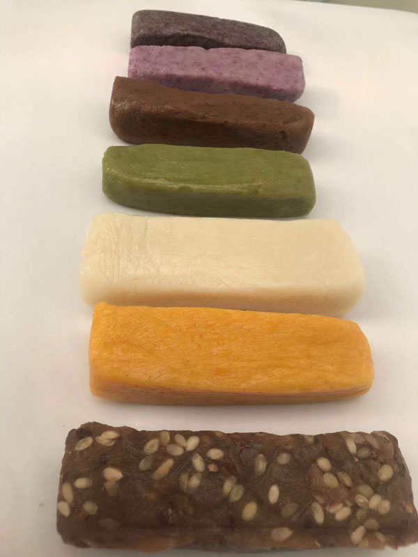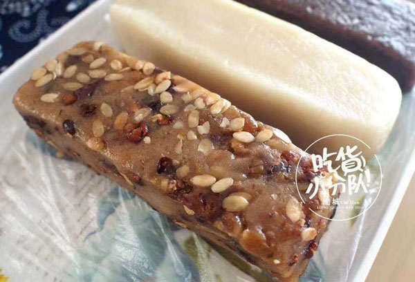 腳踏糕本名“年糕”,按常州周邊地區(qū)的風(fēng)俗習(xí)慣,在春季前夕,各家各戶都要蒸年糕,吃年糕!案狻敝C音“高”,過(guò)年吃年糕被賜予“年年高”,一年高一年,鋒吉祥之意,表達(dá)這人們對(duì)未來(lái)美好生活的憧憬和良好的祝愿。今天小編要帶大家的就是一家至今保持著傳統(tǒng)手工制作的鈺鋒糕點(diǎn)坊。   鈺鋒糕點(diǎn)坊位于常州鄭陸鎮(zhèn)三皇廟范家莊,一個(gè)比較偏僻的村莊,雖然這家作坊不大,但香糯絲滑,軟糯適中,韌勁十足的腳踏糕吸引了無(wú)數(shù)的食客。制作一條腳踏糕要從淘米,浸泡,碾粉,鋪粉,一層一層的鋪下去,需要無(wú)數(shù)道制作工序,這些都是店主孫煥公公老周,憑著幾十年的經(jīng)驗(yàn),加上店主孫煥從不馬虎的決心!   這“腳踏”也并非赤腳上陣,而是把蒸好的糕倒入早以準(zhǔn)備好的框子里,用布包裹好,上面再用薄膜包好,再蓋上布,再換上專門(mén)腳踏的布鞋,踩的時(shí)候要?jiǎng)蚍Q,左右腳要配合好,不然糕會(huì)高高低低,不平整,最后再拿蠟燭線拆成一條小長(zhǎng)條,再拿帶包裝好,如此又香又糯的腳踏糕就大功告成了。   店主孫煥為了讓更多的人認(rèn)識(shí)和了解常州腳踏糕的傳統(tǒng)文化和美食,她在傳統(tǒng)工藝中增加了適合現(xiàn)代文化的多種口味,她在糕里加入南瓜,紫薯,老紅糖,大麥汁,血糯米,核桃,葡萄干,紅棗等食材,做出五顏六色,純天然的口味,深受食客們的喜愛(ài),不管是送人還是自己吃都非常新穎。