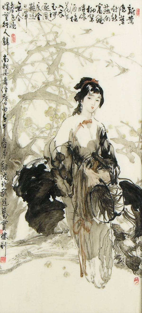 5 牙刻《蕭繹詩意圖》這是一幅充滿詩情畫意離愁別緒的現(xiàn)代水墨牙刻作品。運用多種牙刻手法,極盡寫意人物畫之韻味,用刻刀刻出大寫意潑墨、積墨、彩墨以及水淋淋的滋潤感,在作品中得以淋漓盡致的彰現(xiàn)。以簡勝繁,簡而精妙,簡而品高,刀法簡而意境深遂,把少婦春日盼歸人的離愁別緒刻劃得愈加含情脈脈、楚楚動人,給人以無限的遐思,滿腹的風情。