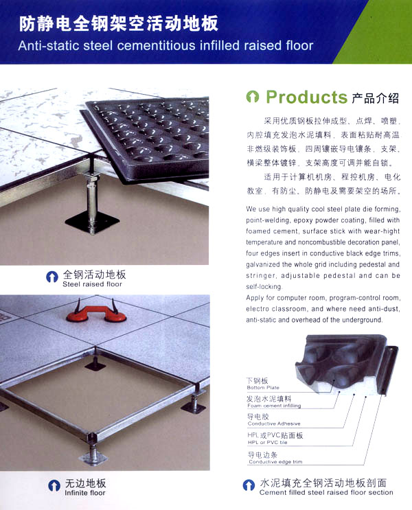 常州天馳活動地板有限公司始創(chuàng)于2010年,原身是常州市武進(jìn)區(qū)橫林天馳機房地板廠,地處橫林工業(yè)園區(qū),交通便捷。 公司主要生產(chǎn)和銷售各種機房地板,自創(chuàng)立以來,以品質(zhì)第一,信譽第一,服務(wù)第一的理念堅持做全國最優(yōu)質(zhì)量。 防靜電高架活動地板是計算機行業(yè)發(fā)展起來的新型鋪地材料,隔離了潮氣,靜電灰塵。最重要的是解決了綜合布線問題,無需預(yù)埋管線,可隨時拆卸,搬移,保證了資訊設(shè)備完整的優(yōu)點,適應(yīng)了智能化樓宇中信息自動化技術(shù)對所處環(huán)境的特定要求,避免了廣大客戶的雙重投資,使現(xiàn)代化辦公程度更加高效,辦公場所更加舒適。 公司專業(yè)生產(chǎn)“天馳”系列活動地板,符合國家安全要求,種類完備多樣,其中防靜電瓷質(zhì)高架通路地板除具有普通瓷質(zhì)的裝飾和實用性外,其耐磨,防水,防火功能優(yōu)于其他同類產(chǎn)品,深受客戶歡迎。 公司大力發(fā)展國內(nèi)外銷售業(yè)務(wù),多次中標(biāo)國內(nèi)重點裝飾工程,例:湖南電視臺,寧波縣變電站,鞍山市120急救指揮中心等。 公司將一如既往開發(fā)和制造一流的產(chǎn)品,愿與廣大有識之士合作發(fā)展,共創(chuàng)美好未來!