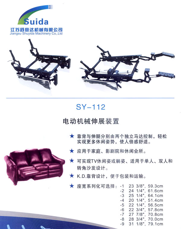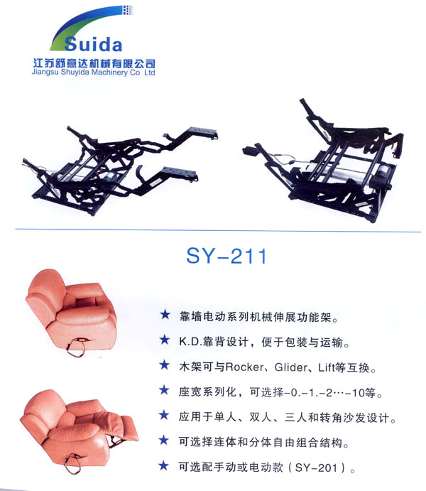 江蘇舒意達(dá)機(jī)械有限公司是一家集研發(fā)設(shè)計(jì),生產(chǎn)制造及銷(xiāo)售的專(zhuān)業(yè)家具五金企業(yè)。公司成立于2006年,座落于風(fēng)景秀麗的江南常州,交通運(yùn)輸?shù)锰飒?dú)厚,為海內(nèi)外客商的來(lái)往交流,洽談和供貨提供了諸多便利,公司占地面積28000平方米,生產(chǎn)廠房面積18000平方米,獨(dú)立的辦公樓,擁有良好的工作環(huán)境。 我們的經(jīng)營(yíng)思理念:堅(jiān)持以人為本,科技為先,用先進(jìn)的設(shè)備,好的工藝流程制造一流的產(chǎn)品。 我們的口號(hào):保證以?xún)?yōu)秀的品質(zhì)服務(wù)于客人,我們的目標(biāo):研發(fā)更多舒適的產(chǎn)品,帶來(lái)生活的享受。 公司誠(chéng)邀海內(nèi)外客商前來(lái)指導(dǎo)洽談,攜手共進(jìn),共造雙贏。