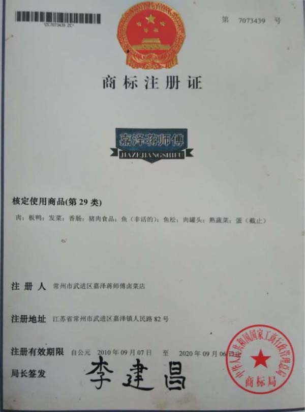 常州市武進(jìn)區(qū)嘉澤蔣師傅鹵菜店經(jīng)營已有30多年,本產(chǎn)品采用祖?zhèn)髑旯欧郊右钥茖W(xué)營養(yǎng)的獨(dú)特鹵料配方、加入30多種名貴香料和中藥材秘制而成,達(dá)到色、香、味、形的俱加效果。做出來的產(chǎn)品不僅口感鮮美、香盈撲鼻、而且色澤誘人!肉感細(xì)膩、韌勁適度、有嚼勁、香辣入骨、不加塞牙縫,食用后具有特別的回味宇香,是極好的送禮佳品。