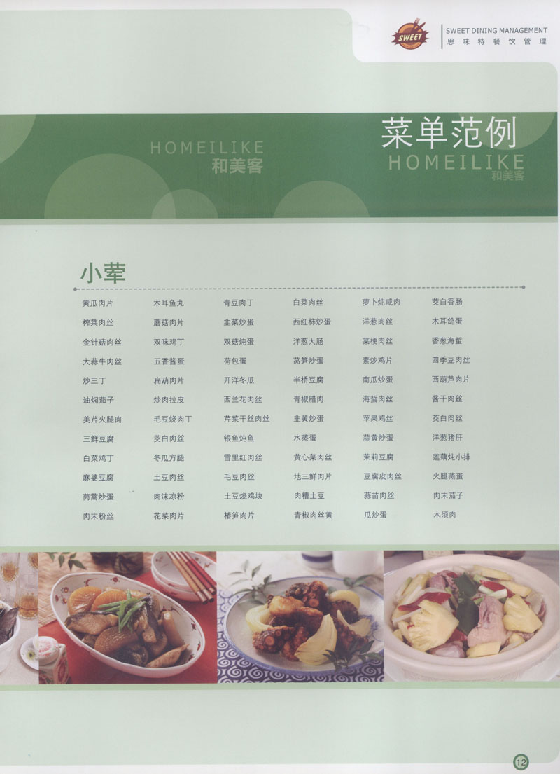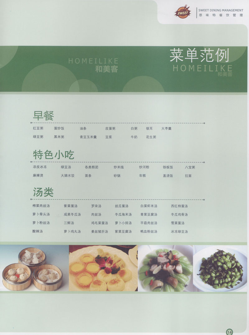 常州市思味特餐飲有限公司是一家專業(yè)從事企事業(yè)后勤服務(wù)的有限責(zé)任公司,公司從承包食堂起步,逐漸發(fā)展為經(jīng)營團膳承包、營養(yǎng)送餐、生活區(qū)管理、連鎖餐廳的綜合型企業(yè)。2008年公司斥資100萬元,在常州興建了可以同時提供3000餐膳食的中央廚房,重點打造“和美客”后勤服務(wù)品牌,全力為企事業(yè)單位解決后勤后顧之憂。 到目前為止,我們合作成功的企事業(yè)單位超過50多家,服務(wù)人數(shù)突破15萬,合作單位包括國家機關(guān)、國有企業(yè)、三資企業(yè)、民營企業(yè)、學(xué)校、醫(yī)院等,其中不乏國際知名品牌公司。 和美客愿為更多的國內(nèi)外企事業(yè)單位及機關(guān)團體分憂解難,從廚房設(shè)計、菜品配送、團膳承包、到生活區(qū)管理等提供全方位的服務(wù)。