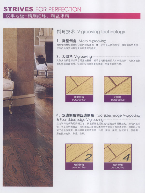 常州漢豐裝飾材料有限公司是一家涉及強化地板制造、屏風鋁材生產、進出口貿易的大型公司。2001年公司投入重資.全面引進世界頂級一體化自動流水生產線和具有國際先進水準的德國權威木地板生產技術,興建強化地板生產基地。多年以來.一直不斷加強生產設備、廠房基礎投入,目前公司年生產強化地板能力已經(jīng)達到了500萬平方米,步入國內一流行列,具備了雄厚的國際競爭力。 漢豐地板以奉獻生活中最完美的地板為發(fā)展目標,時尚流行的設計風格和多樣化的產品類型,贏得了市場的廣泛贊譽和肯定。產品嚴格按照歐洲標準檢測強化木地板的各項性能指標.達到百分百的國際技術標準,確保了每一塊地板都有著上乘品質,是綠色環(huán)保的好地板。并先后通過了Isc)9001國際質量管理體系認證,IS014001國際環(huán)境管理體系認證.中國環(huán)境標志產品認證,深得用戶的一致好評,是寫字樓、商場、大型超市、學校、建筑樓宇、娛樂場所、家用私宅等鋪裝的首選地板。