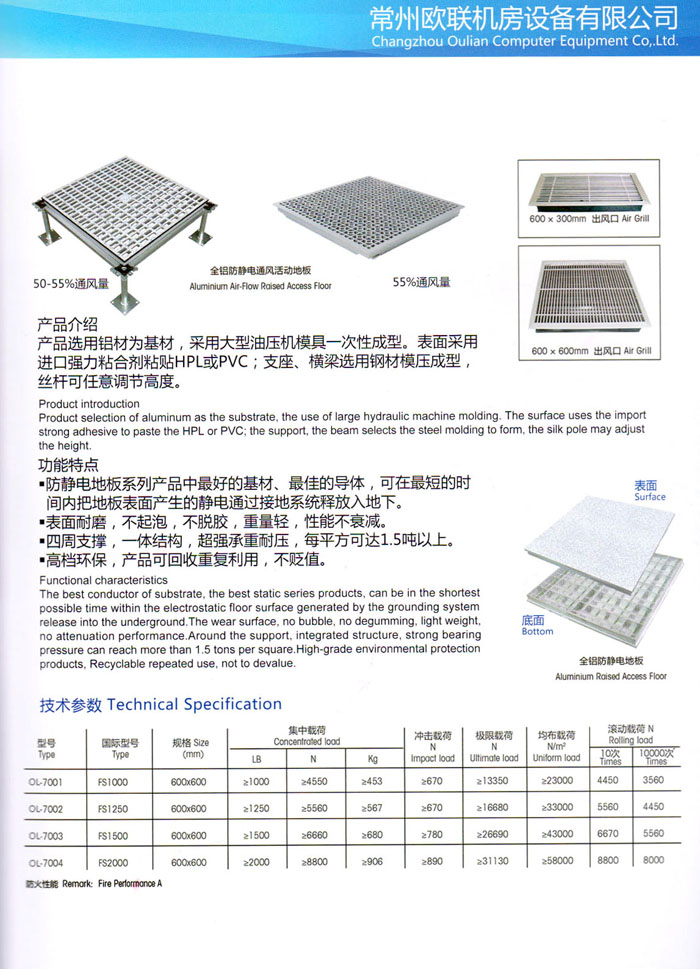 防靜電高架活動(dòng)地板、全鋼地板、陶瓷地板是計(jì)算機(jī)行業(yè)發(fā)展起來(lái)的新型鋪地材料,隔離了潮氣、靜電灰塵,最重要的是解決了綜合布線問(wèn)題,無(wú)需預(yù)埋管線,可隨時(shí)拆卸、搬移,保證了資訊設(shè)備完整的優(yōu)點(diǎn),適應(yīng)了智能化樓宇中信息自動(dòng)化技術(shù)對(duì)所處環(huán)境的特定要求,避免了廣大客戶的雙重投資,使現(xiàn)代化辦公程度更加高效,辦公場(chǎng)所更加舒適。 “歐聯(lián)”系列全鋼地板,符合國(guó)家安全要求,種類完備多樣,其中防靜電陶瓷地板、硫酸鈣地板等除具有普通瓷質(zhì)的裝飾和實(shí)用性外,其耐磨、防水、防火功能優(yōu)于其它同類產(chǎn)品,防靜電系列地板,能切合不同客戶的要求,其靈活的配置,深受客戶歡迎,不同材質(zhì)的地板結(jié)構(gòu)使設(shè)計(jì)師的設(shè)計(jì)空間比傳統(tǒng)的更加廣闊自由和善變。 公司大力發(fā)展國(guó)內(nèi)外銷售業(yè)務(wù),多次中標(biāo)國(guó)內(nèi)重點(diǎn)工程 ,例:哈爾濱醫(yī)科大學(xué)、山東大學(xué)、上海普通機(jī)場(chǎng)等。 公司將一如既往開(kāi)發(fā)和制造一流的產(chǎn)品,愿與廣大有識(shí)之士合作發(fā)展,共創(chuàng)美好未來(lái)。